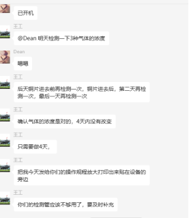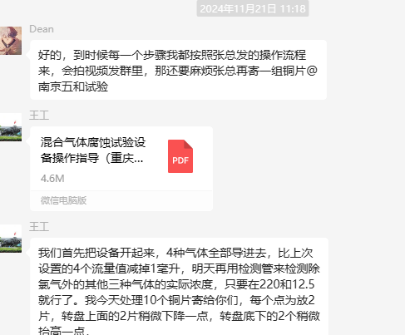 2024年8月份重慶******第三方檢測公司再次采購我司一臺型號為“WHQ-300B”型的混合氣體腐蝕試驗箱,設(shè)備被運送到客戶指定的場地安裝調(diào)試運行。客戶后期自行進行一次銅片增重試驗,起初試驗結(jié)果不是很理想,,試驗的流程和注意事項未了解透徹,我司針對以上信息,整理了操作指導作業(yè)書進行幫助理解;通過理論知識和我司技術(shù)人員線上指導操作的配合,該增重試驗很成功。試驗結(jié)束之后客戶將數(shù)據(jù)發(fā)給我司,以下是客戶和我司聊天記錄以及客戶做的數(shù)據(jù)信息: